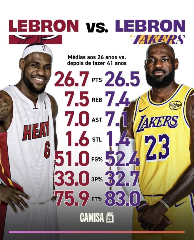 • 对比26岁的詹姆斯 41岁的詹姆斯数据更好!为何球队战绩更差?