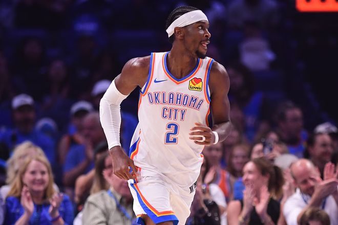相比上赛季,亚历山大的得分有一丝丝小下滑(上赛季场均32.7分),但在原来已经很强的基础上,亚历山大的效率又上升了一个档次(上赛季真实命中率63.7%)。