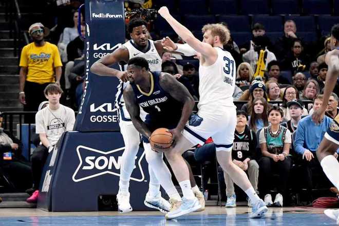 中场休息回来,双方连续三节得分30+继续对攻,且灰熊已经连续两节得分35+。鹈鹕借助墨菲、锡安与兰代尔持续得分咬住比分,灰熊则是兰代尔与贾伦继续内线肆虐,韦尔斯与GG-杰克斯也是持续得分扩大优势。灰熊单节36-33再赢3分,三节结束灰熊扩大101-93领先鹈鹕。前三节比赛,鹈鹕三分30中10,墨菲24分、锡安17分、贝17分与费尔斯10分;灰熊三分32中14,贾伦24+10与兰代尔24+8,引领4人得分上双。