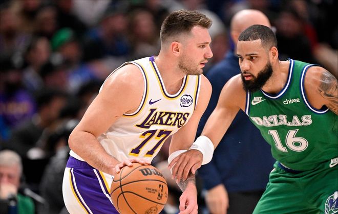 让湖人一度陷入绝境的,毫无疑问是运动战16中4的艾顿,很难理解顿宝为什么连吃饼都不会了,所有出手都在油漆区完成,却只有25%的命中率,直接把全队都给整不会了。无奈之下,湖人主教练雷迪克选择把艾顿摁在了替补席上,摆起了五小阵容,没有了大个子掩护的东契奇,面临独行侠无休无止的包夹,一度非常挣扎,但若是真这么容易被针对,卢卡就不配称为联盟五绝。