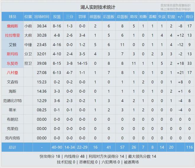 詹姆斯今天状态不佳,独行侠第三节开始夹击东契奇。艾顿继续吐饼,被海斯换下。湖人连续被抢断,独行侠5分钟轰出16-0的攻击波,一举完成反超。加福德大帽范德彪,直接点燃全场。湖人第三节仅得14分,独行侠轰下35分。