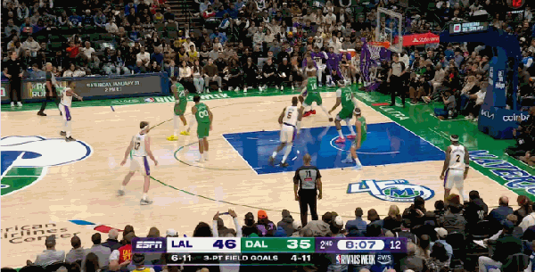 老练的湖人反超后,便没再给稚嫩的独行侠任何的机会