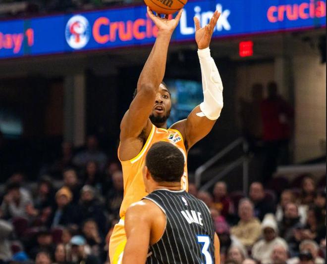 重新回到赛场之后,魔术在防守端想尽办法去限制米切尔的发挥,甚至一过中线,就伺机对他进行夹击,想要迫使米神将球交给队友去处理,但是并没有太好的效果,面对高强度的防守,米切尔仍然保持了25次出手命中15球的效率,其中三分球8投5中,贡献了45分、4个篮板和4次助攻的全面个人数据。