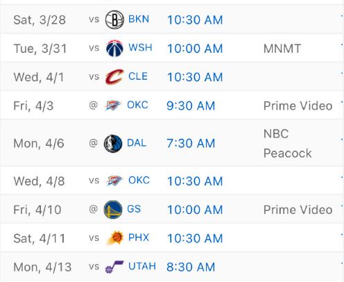 西部前6格局已经逐渐明朗,但名次之争还很乱,湖人掘金森林狼火箭争3456、太阳快船开拓者勇士争两个季后赛名额。