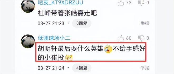 胡明轩全场10中4,三分球7中2,还有两次失误,虽然得了10分,但关键时刻多次浪投,对球队伤害不浅。崔永熙投篮命中50%,三分命中率也是50%,为什么不多给崔永熙传球?广东球迷怒批胡明轩:“你最后耍什么英雄?不给手感好的小崔投。”确实如此,他不该想当英雄,若多给队友作球不至于遭到绝杀,今天是他坑了杜锋和广东队。早就说了,不该让这样的人打首发,如果让小崔和陈家政首发,效果会更好一点。你们说呢?