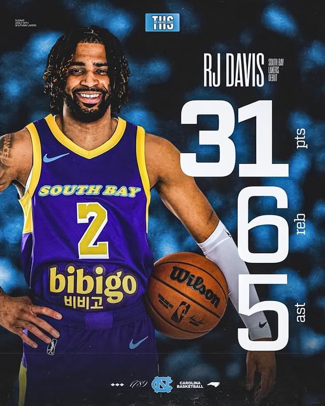 虽然NBA下来的球员星光熠熠,但南湾湖人的真核心还是RJ·戴维斯。这位前北卡球星本赛季场均轰下18.3分、4.9次助攻,三分命中率高达45.9%。他在场上的指挥若定,是这波12连胜的定海神针。