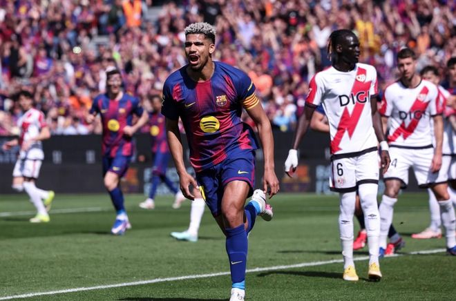 西甲第29轮的一场比赛展开争夺,领头羊巴萨在主场迎战巴列卡诺。上半场,拉菲尼亚浪费单刀机会,阿劳霍头球破门首开纪录,拉菲尼亚劲射中框。下半场,亚马尔低射踢偏,乌奈-洛佩斯头球攻门被神扑化解。最终,巴萨1-0击败巴列卡诺,联赛豪取5连胜。巴萨73分领跑积分榜,皇马被压制屈居第2名。