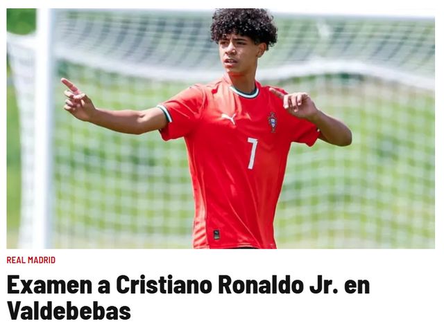41岁的C罗,目前效力于沙特的利雅得胜利,继续朝着1000球目标迈进(目前965球)。C罗的儿子迷你罗,也展现出不俗的足球天赋。3月25日,《马卡报》和《阿斯报》确认,本周二,迷你罗来到皇马拉法布里卡青训,在皇马U16试训。如果迷你罗加盟皇马U16,这也是足坛子承父业的典范。