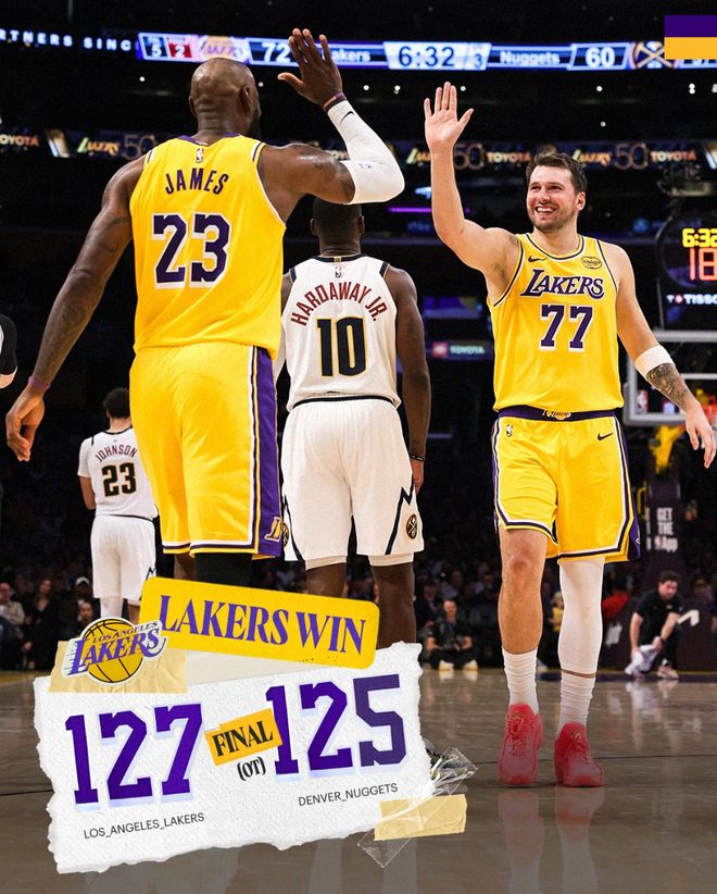 湖人加时险胜掘金5连胜 东契奇30分三双送准绝杀