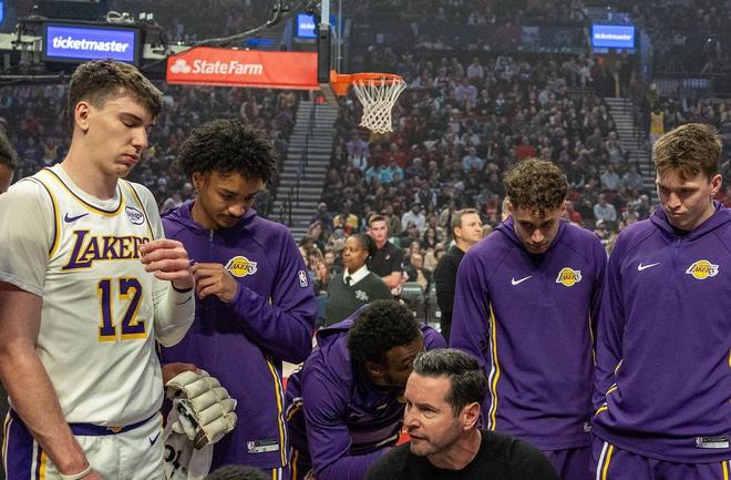 这场对阵开拓者的比赛,湖人总是被对手轻易地突破防线,而且在艾顿和海斯都缺阵的情况下,内线基本上没有任何保障。这一战开拓者投篮命中率52%,三分命中率38%。开拓者第一节轰下40分,第二节轰下31分,第三节得到36分。到了末节,球队大比分领先,进攻有所收敛,仍然得到25分。
