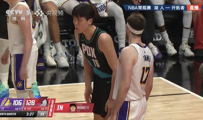 末节詹姆斯被吹罚技犯,克林根两罚一掷,罚丢1球,霍勒迪得2分,帮助开拓者115-97领先,湖人的蒂米接球三分命中。双方场上状况不断,还剩7分钟时,湖人落后11分。卡马拉没人防了,为开拓者投进三分,夏普的大空位三分也进,打停湖人。回到比赛,夏普突进去拉杆上篮打进,19分差距!还不换小杨呢?之后开拓者又把分差拉大到22分,可以鸣金收兵了。杨瀚森上场,乐福单打不传球,真独啊,开拓者132-116取胜。