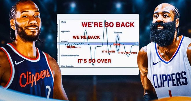 与伦纳德的高效形成鲜明对比的,是哈登的挣扎。在这波逆袭中哈登咬牙苦苦支撑,同期虽然场均数据来到24.8分3.8篮板7.8助攻,看似不俗,但39.6%的投篮命中率与30.9%的三分命中率均处于生涯低谷。更致命的是他的状态波动,防守端移动速度排名联盟倒数第二,与东契奇一同沦为防守漏洞;进攻端第三节时常“隐身”,数据显示,当比赛进入第三节时,哈登的两项命中率跌至32.8%+20.9%。而快船也陷入一个怪圈,球队要想赢球,伦纳德与哈登的得分总和必须稳定在55-60分区间。但这套“双核透支”的赢球模式,早已埋下隐患。