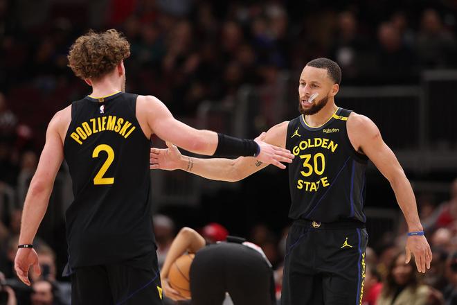 全场在追梦、梅尔顿两名核心轮转缺阵的情况下,勇士队依旧7人得分上双,除了库里之外,巴特勒、波斯特、穆迪、波杰、希尔德和霍福德也都交出两位数得分。