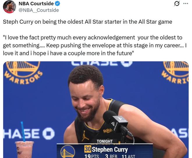 正是凭借这样的表现,库里在赛前成功入选全明星首发,西部另外四名首发是东契奇、亚历山大、约基奇和文班。