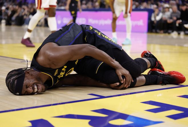 巴特勒是在今日勇士vs热火的比赛中受伤的,在比赛进行到第三节时,巴特勒在跳起抢球落地时膝盖受伤,当即痛苦倒地并捂着膝盖,勇士立马喊出暂停,巴特勒在地上躺了不短时间后尝试起身,但右腿完全无法发力,他被队友架着回到了更衣室。