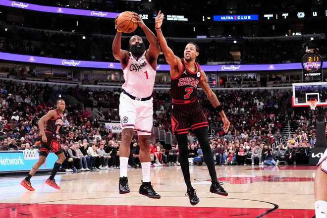 快船过去6连胜豪取6连胜升西部前十,公牛上一次主场124-102大胜篮网。本场快船缺少莱昂纳德、博格丹与比尔,公牛缺少吉迪、帕威、扎克-科林斯。首节开局,哈登上篮与科林斯两记三分取得8-0领先,公牛回敬一波11-2攻势反超,其中公牛连中3记三分。快船连续冲击内线一波8-3夺回领先,赫尔特三分追分,快船一波7-2攻势维持6分优势。公牛连中两记三分追平,米勒中投与哈登三罚全中,首节结束快船30-25领先公牛。首节快船三分7中3,哈登9中4得到12+4,公牛三分13中6。