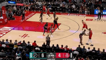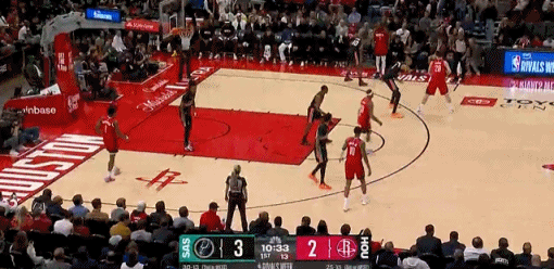 开场后,火箭的球员都盯着文班亚马打