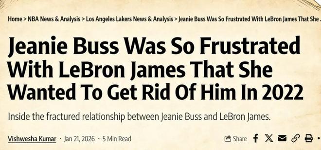 就在媒体、球迷纷纷解读,这番言论是否会引发球队更衣室动荡的时候,ESPN记者Baxter Holmes又撰文爆料,球队小老板珍妮·巴斯已经对詹姆斯不满许久,双方关系很差,巴斯甚至考虑过交易詹姆斯。