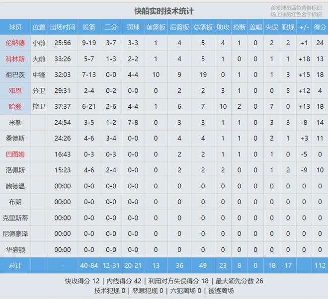 如果东契奇空位三分命中,湖人将追到3分,可惜没有如果。全场结束,快船112-104战胜湖人。最近17场比赛,快船豪取14胜3负,继续北伐!伦纳德只打了26分钟,砍下24分5板4助、祖巴茨18分19板、哈登18分7板10助7失误。